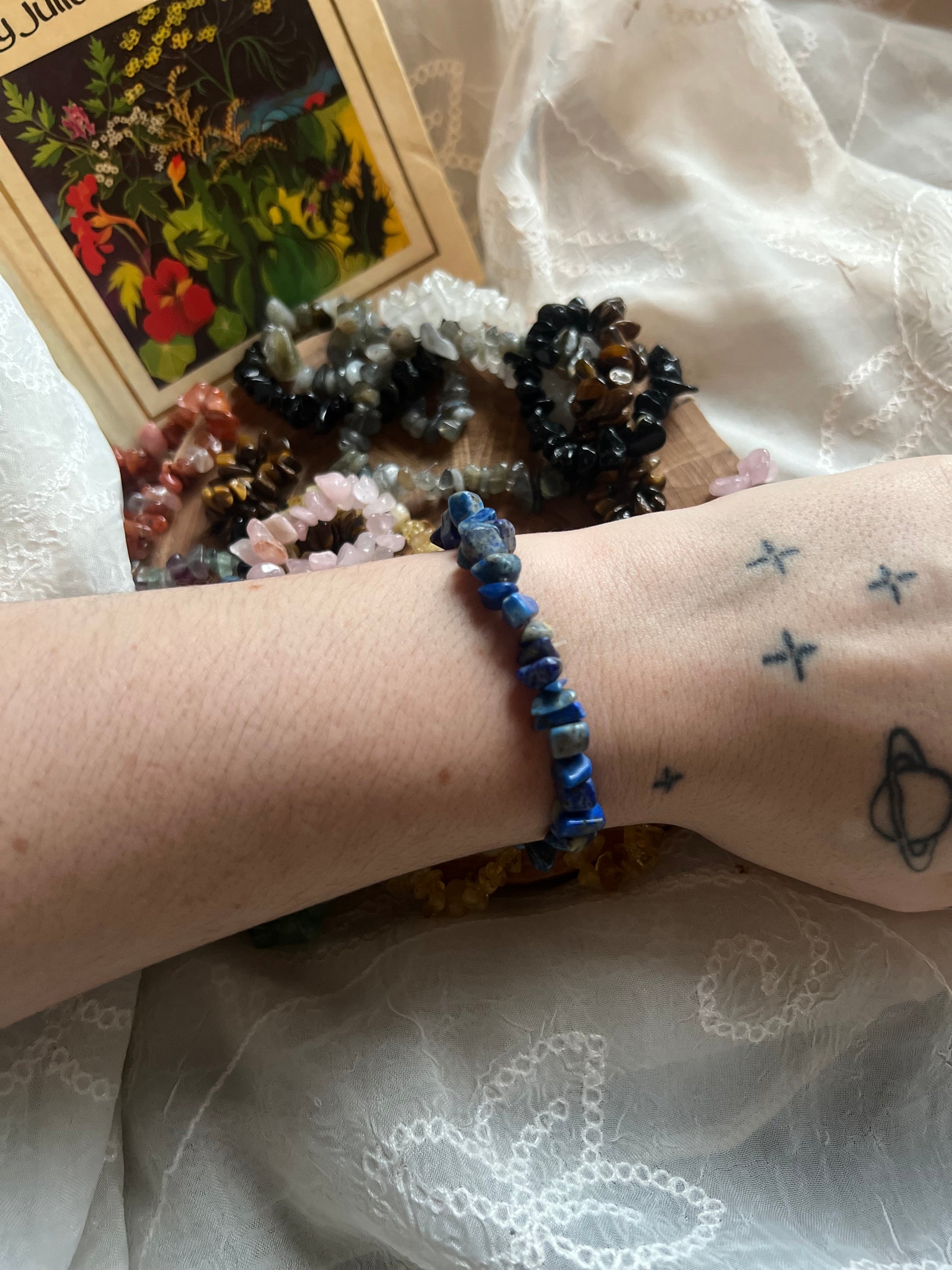 all stones used are either natural ethically sourced stones or handmade glass/resin beads so will and look different and have imperfections.