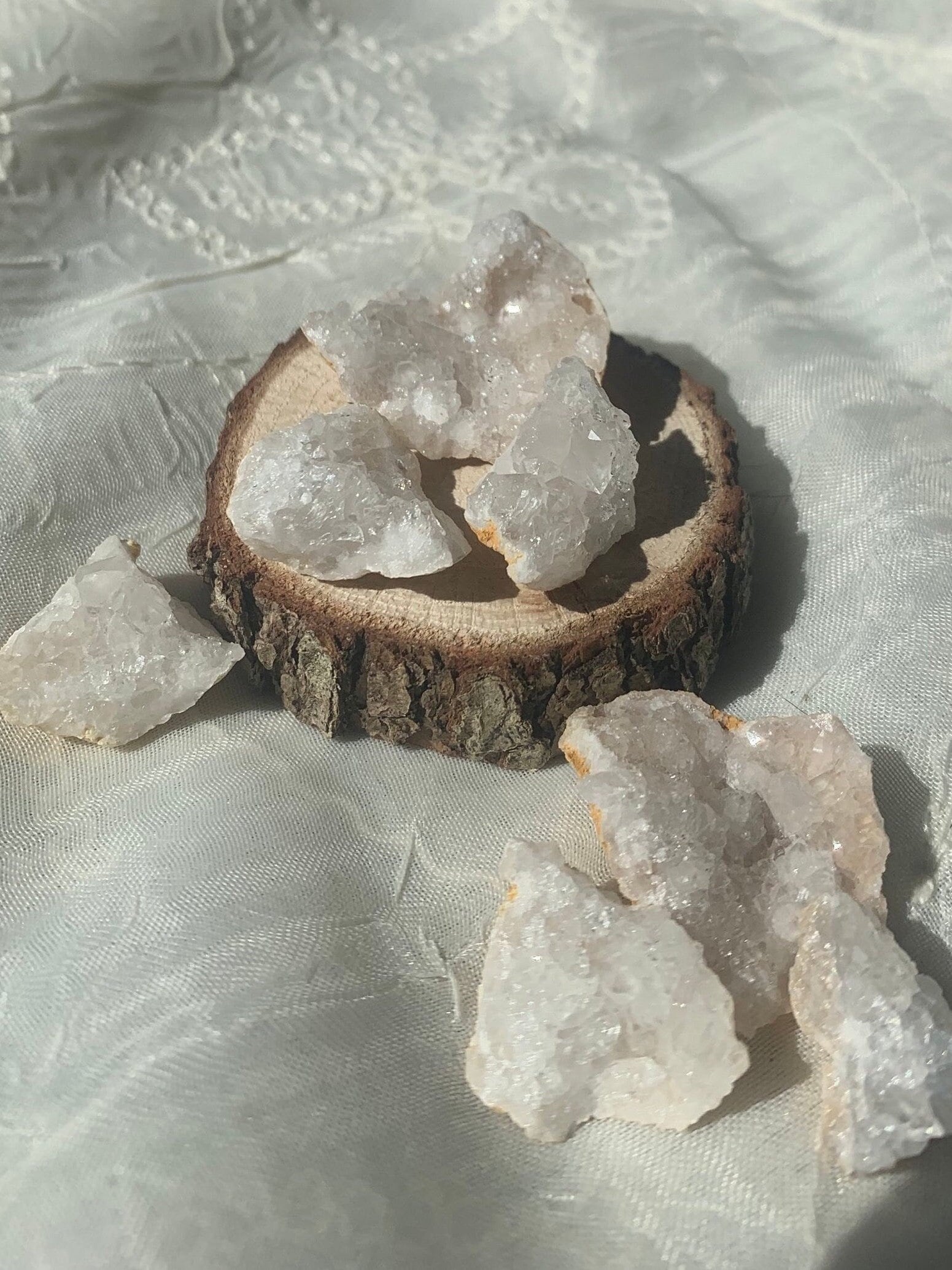 natural chunks/ chips of clear quartz geode. all cryatsl are natural so will have imperfections and may be sharpe. please be careful