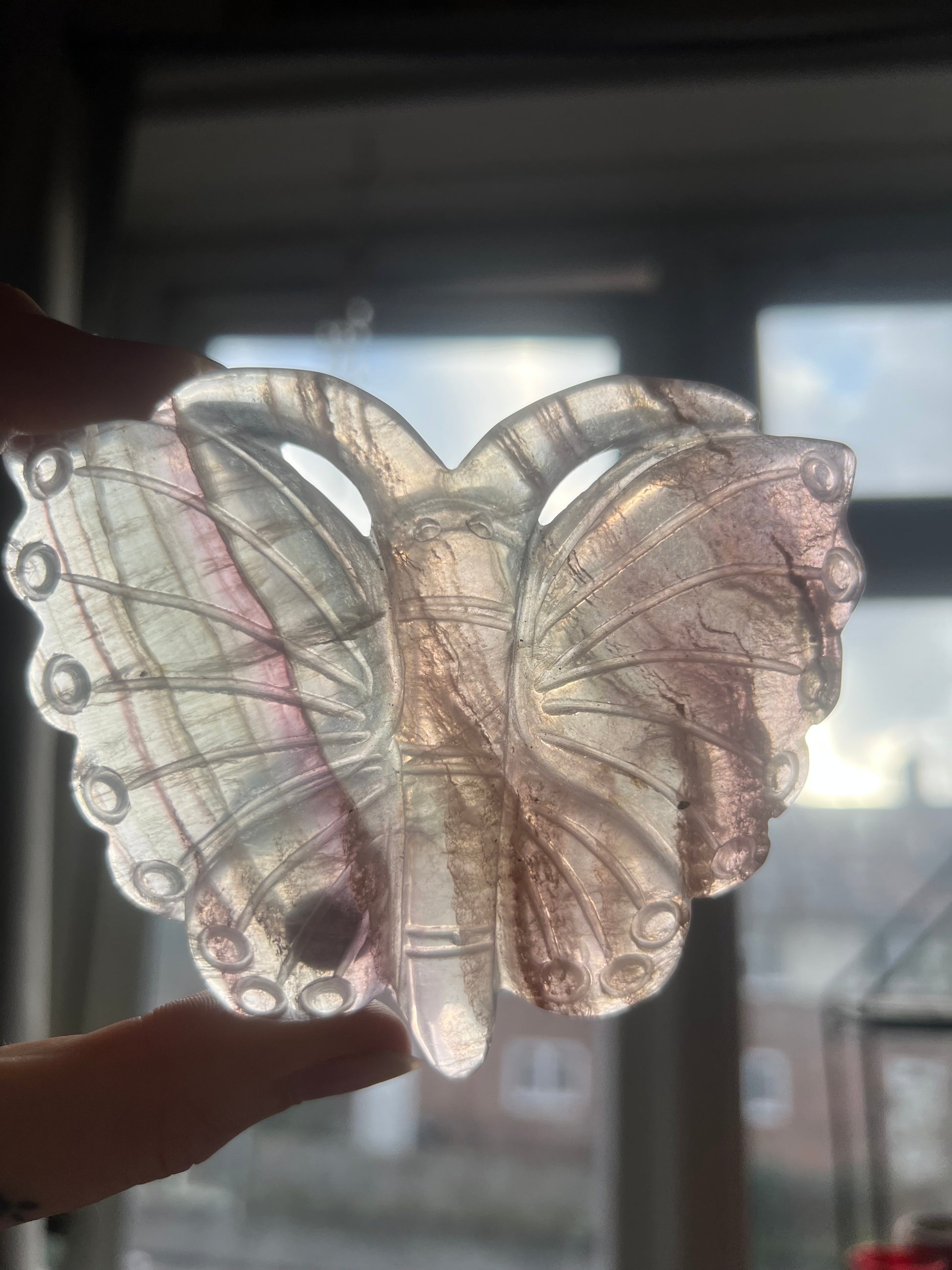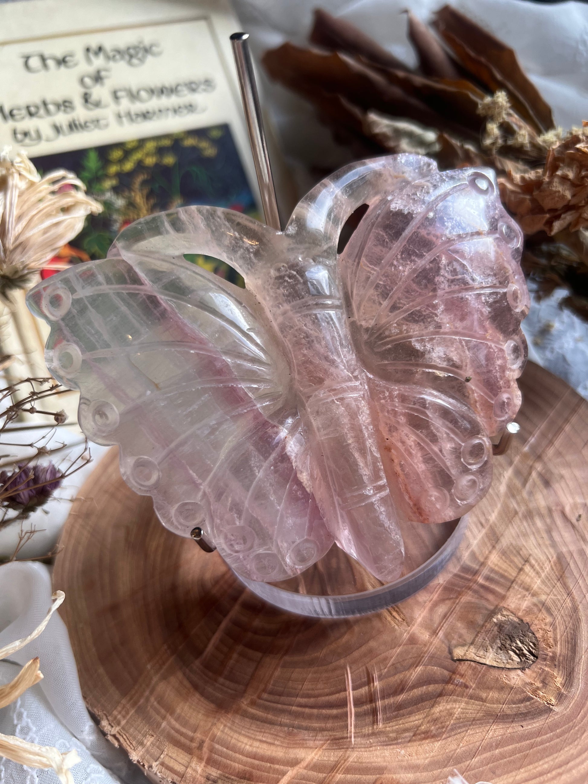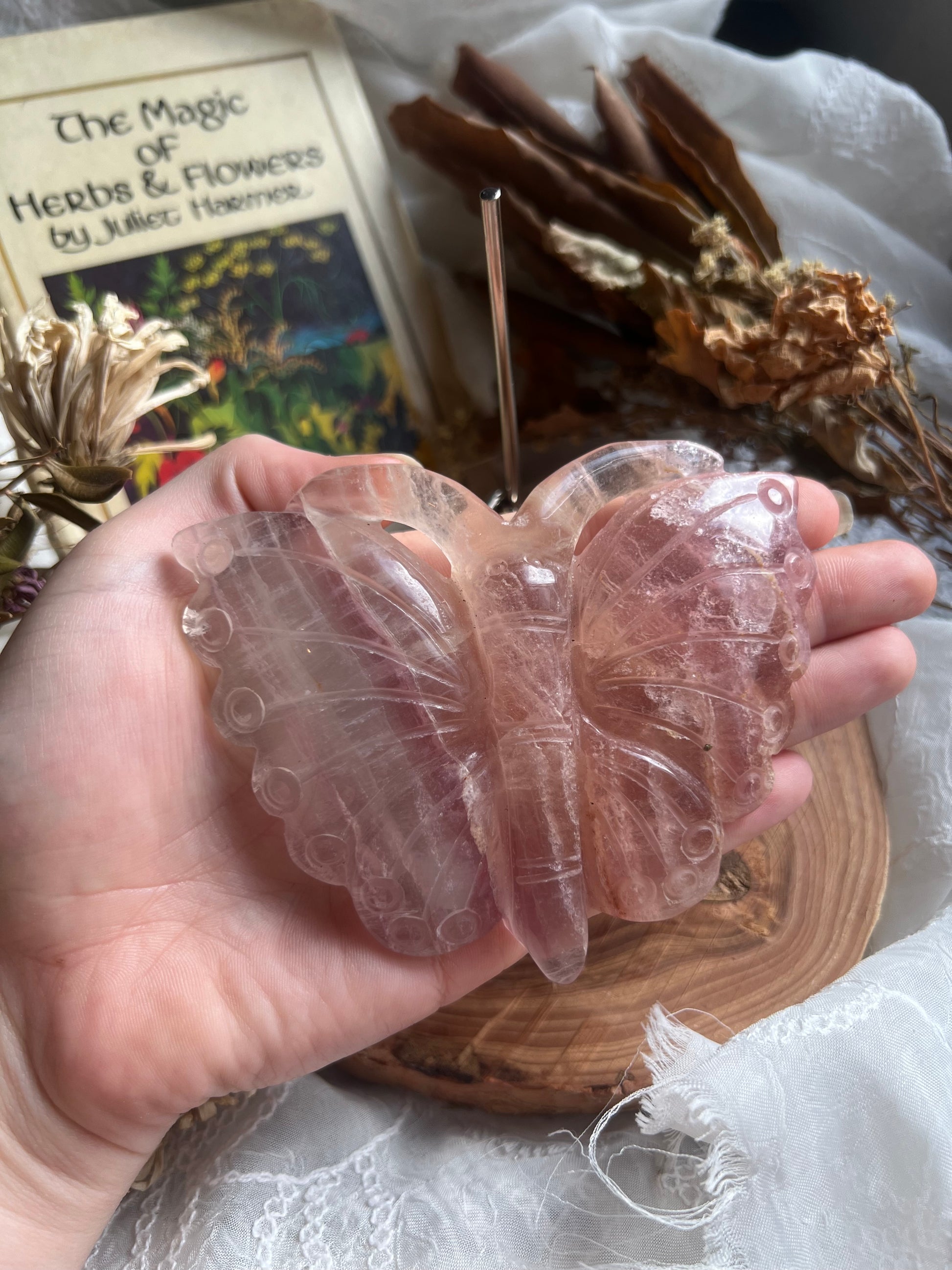 large hand carved butterfly shaped display crystal